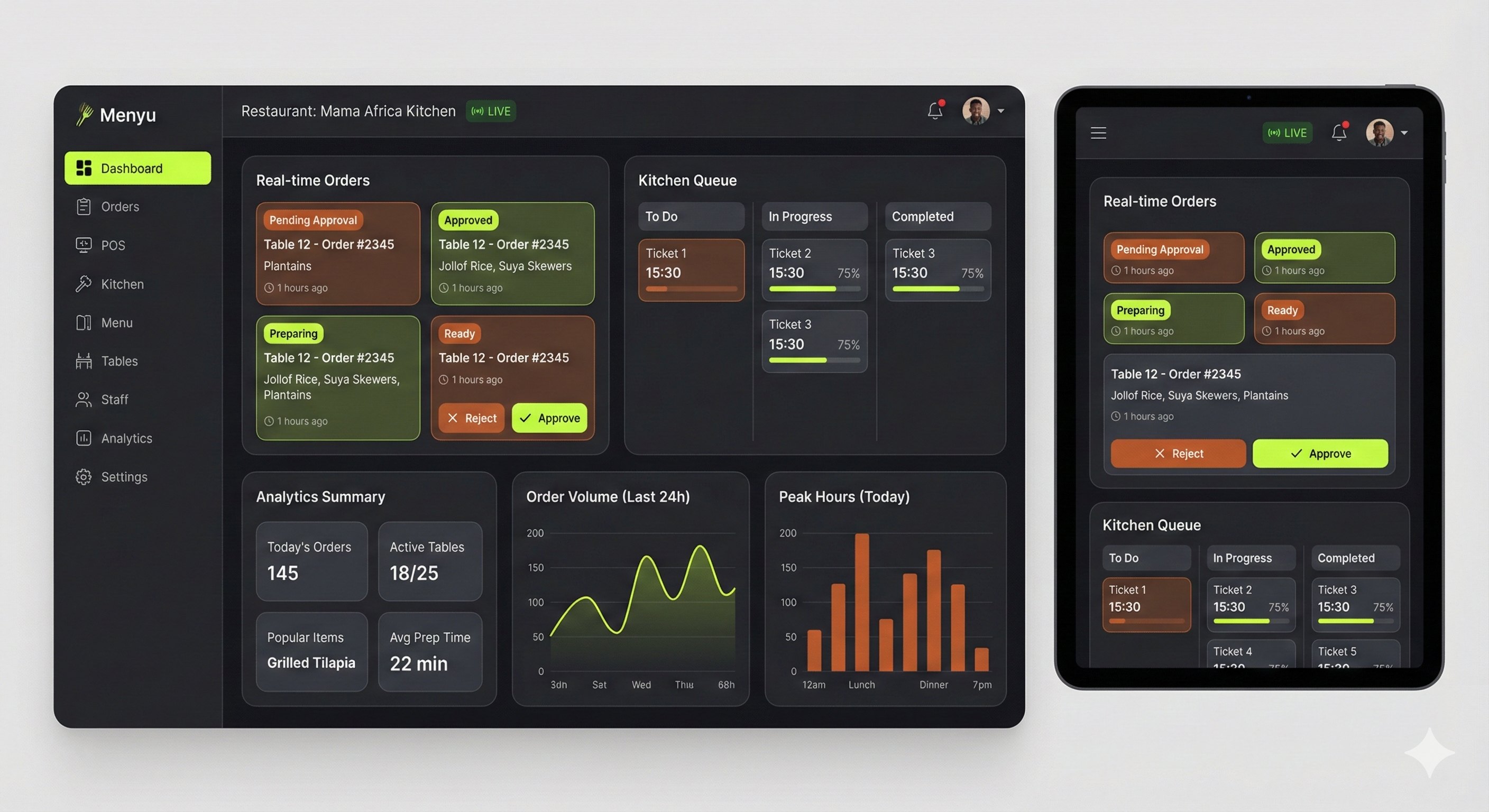Real-time orders, kitchen queue & insights